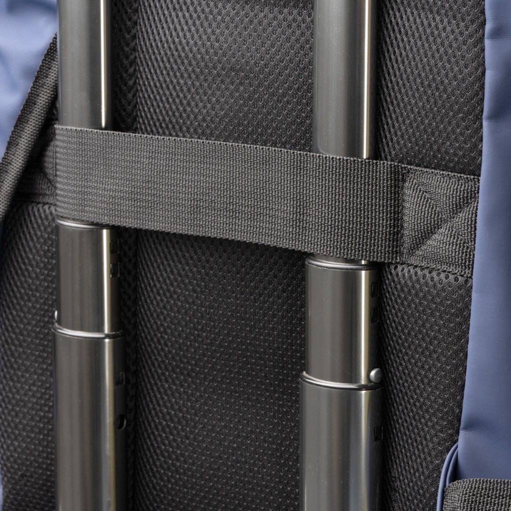 Plecak uszyty z tkaniny RPET 300D z powłoką PVC, co zapewnia odporność na wilgoć. Model wyposażony jest w wodoodporne zamki. W głównej komorze znajduje się zapięcie na podwójny zamek oraz wewnętrzna kieszeń na laptopa do 15 cali, a także dwie mniejsze kieszonki na drobne przedmioty.
