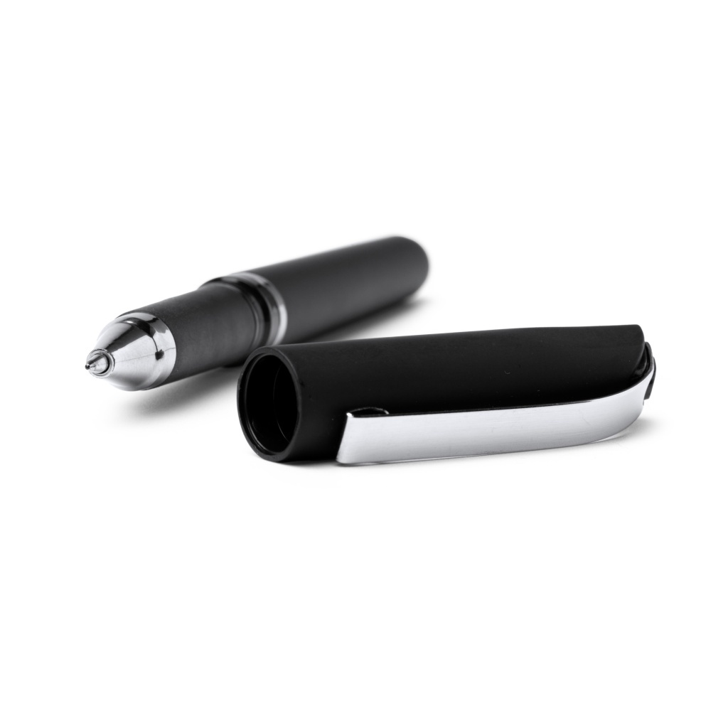 Długopis z trwałego tworzywa ABS o matowym wykończeniu. W komplecie nasadka z klipsem oraz metalicznymi elementami. Wkład Jumbo z niebieskim tuszem żelowym.