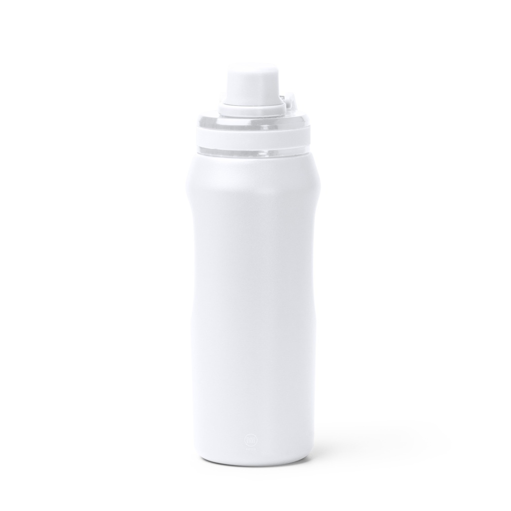 Butelka z podwójnymi ściankami wykonanymi ze stali nierdzewnej 304 pochodzącej z recyklingu, wyposażona w półprzezroczystą pokrywkę z tritanu ze zintegrowanym dozownikiem i zakrętką. Pojemność: 600 ml. Konstrukcja została zaprojektowana, aby utrzymać napoje w optymalnej temperaturze, z wykończeniem w postaci malowania proszkowego.