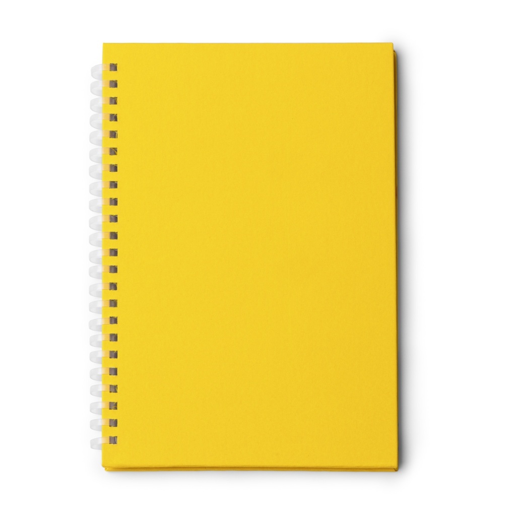 Zeszyt w formacie A5 wyposażony w elastyczne pierścienie z tkaniny RPET, ze sztywną okładką z poliestrowego RPET pochodzącego z recyklingu oraz 90 arkuszami w kratkę.