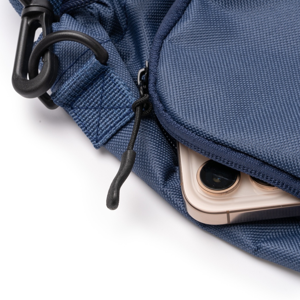 Torba na długim pasku przeznaczona na butelki o pojemności do 2,5 l, uszyta z tkaniny RPET 600D, z regulowanym ściągaczem przy zamknięciu. Wyposażona w dużą zewnętrzną kieszeń z szerokim wlotem i zamkiem błyskawicznym dopasowanym kolorystycznie do korpusu oraz czarny uchwyt zamka. Posiada regulowany pas z wzmocnieniami do noszenia, odpinany za pomocą wbudowanego karabińczyka. Wnętrze jest podszyte dla zwiększenia wytrzymałości i trwałości.