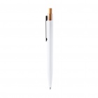 Długopis z kolorowym korpusem z tworzywa ABS pochodzącego z recyklingu. Wyposażony w bambusowy przycisk, przezroczyste elementy oraz metalowy klips. Tusz w kolorze niebieskim.