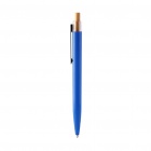 Długopis z kolorowym korpusem z tworzywa ABS pochodzącego z recyklingu. Wyposażony w bambusowy przycisk, przezroczyste elementy oraz metalowy klips. Tusz w kolorze niebieskim.