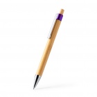 Długopis z korpusem i przyciskiem wykonanymi z bambusa. Wyposażony w klips oraz metalowo wykończoną końcówkę, uzupełnioną kolorowymi, półprzezroczystymi elementami. Tusz niebieski.