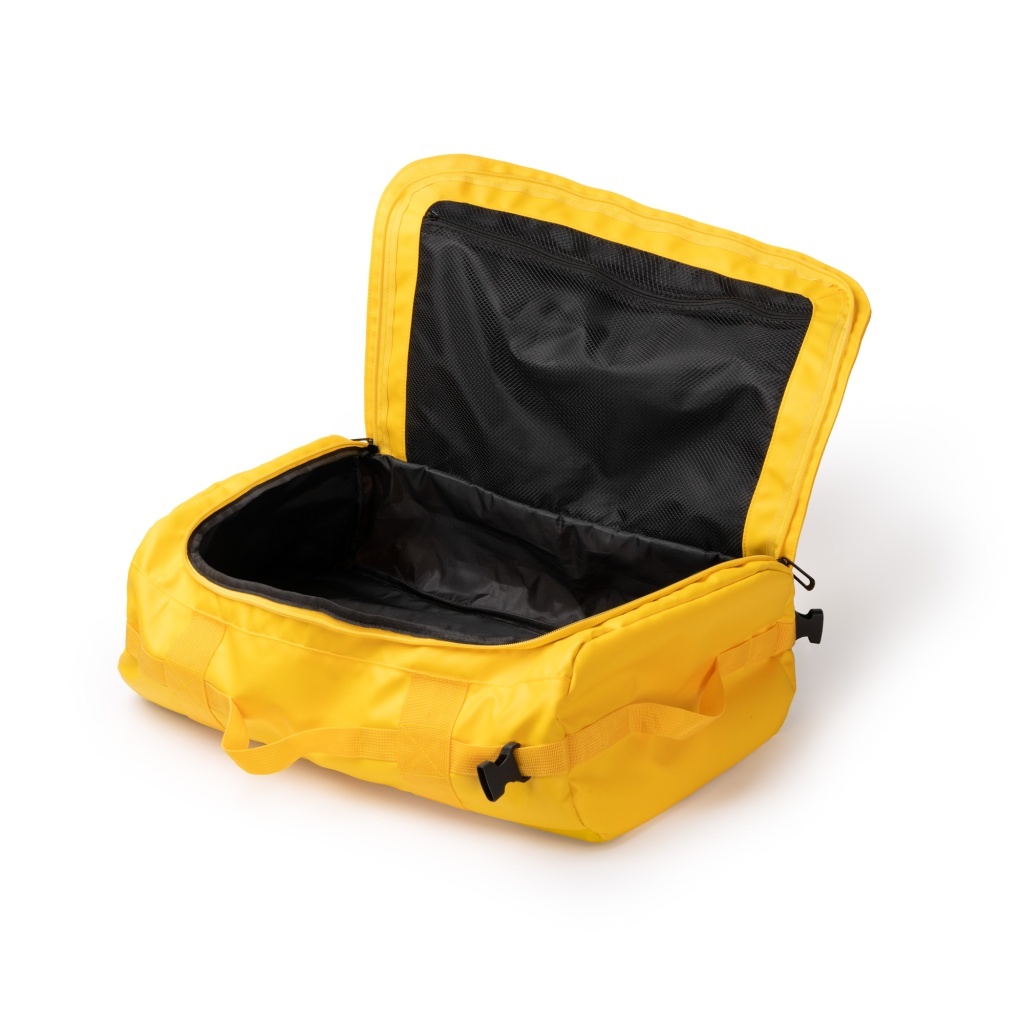 Wszechstronny plecak wykonany ze skóry PU i poliestru 600D. Posiada pojemną komorę główną z dużą kieszenią z siatki zamykaną na zamek oraz paski mocujące stabilizujące zawartość. Wyposażony w dużą przednią kieszeń na zamek. Szelki można schować w tylnej kieszeni zapinanej na zamek, co umożliwia przekształcenie plecaka w torbę podróżną dzięki uchwytom do przenoszenia po bokach. Wyściełane plecy i szelki.