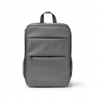 Plecak z ekologicznej skóry PU, wyposażony w dwie komory — obie zamykane podwójnym zamkiem błyskawicznym. Jedna komora jest wyściełana i przeznaczona na laptopa o przekątnej do 15 cali. Druga, rozciągana na zamek, zawiera kieszeń z elastycznym ściągaczem, przeznaczoną do bezpiecznego przechowywania innych urządzeń.