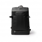 Izotermiczny plecak z wykończeniem ze skóry PU, wyposażony w główną komorę z izotermicznym wnętrzem i górnym otwarciem oraz dolną komorę dodatkową również z izotermicznym wnętrzem i pełnym otwarciem. Obie komory zamykane są podwójnie za pomocą zamków błyskawicznych. Plecak posiada obszerny panel przedni, boczne klamry dla lepszego dopasowania oraz wyściełane plecy i szelki zapewniające wygodę.