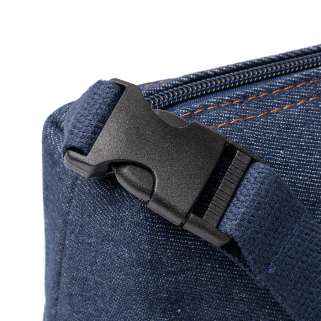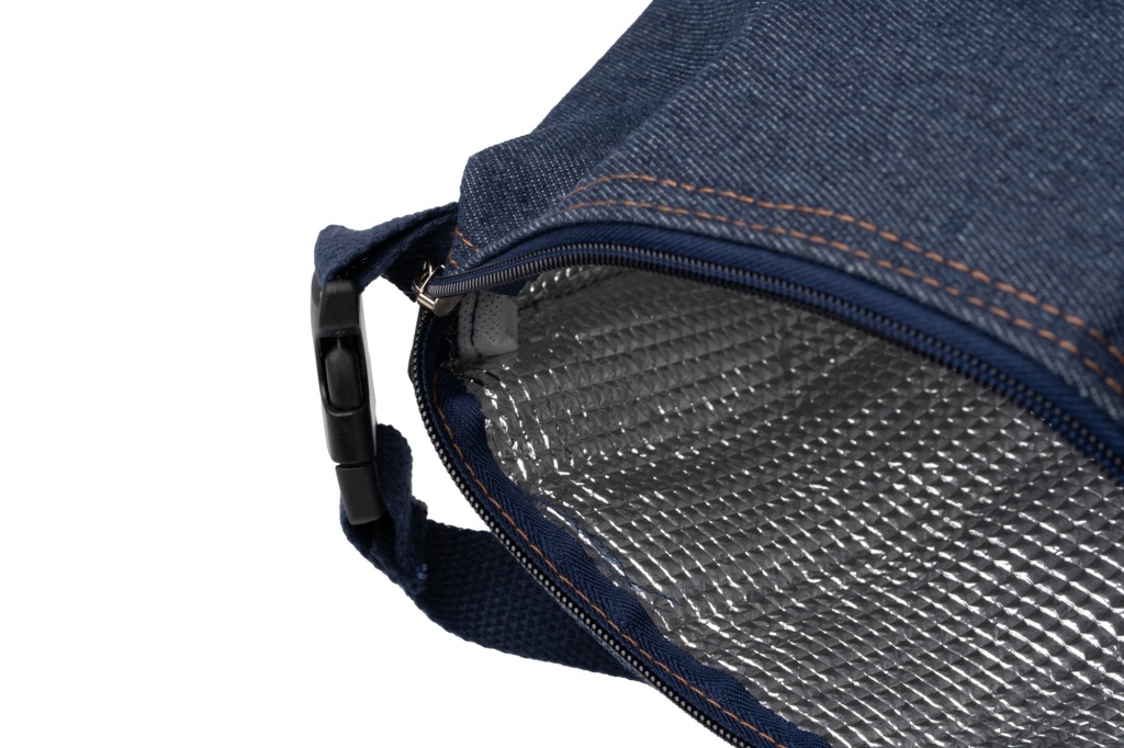 Torba termoizolacyjna uszyta z dżinsu pochodzącego z recyklingu, z izotermiczną wyściółką, która pomaga utrzymać żywność w odpowiedniej temperaturze. Zamykana na zamek błyskawiczny z metalowym suwakiem. Wyposażona w uchwyt do przenoszenia z klamrą.