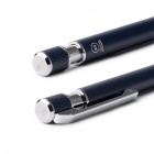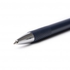 Pióro z aluminium pochodzącego z recyklingu, matowe wykończenie w jednolitym kolorze z srebrnymi detalami. Powierzchnia teksturowana w obszarze uchwytu i przycisku. Atrament niebieski.